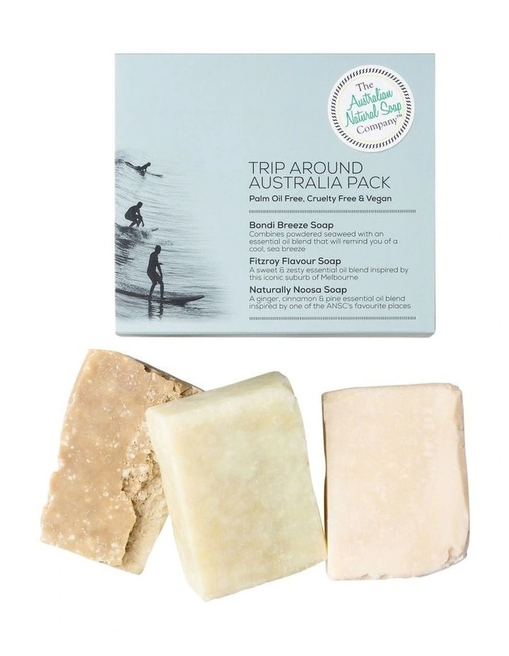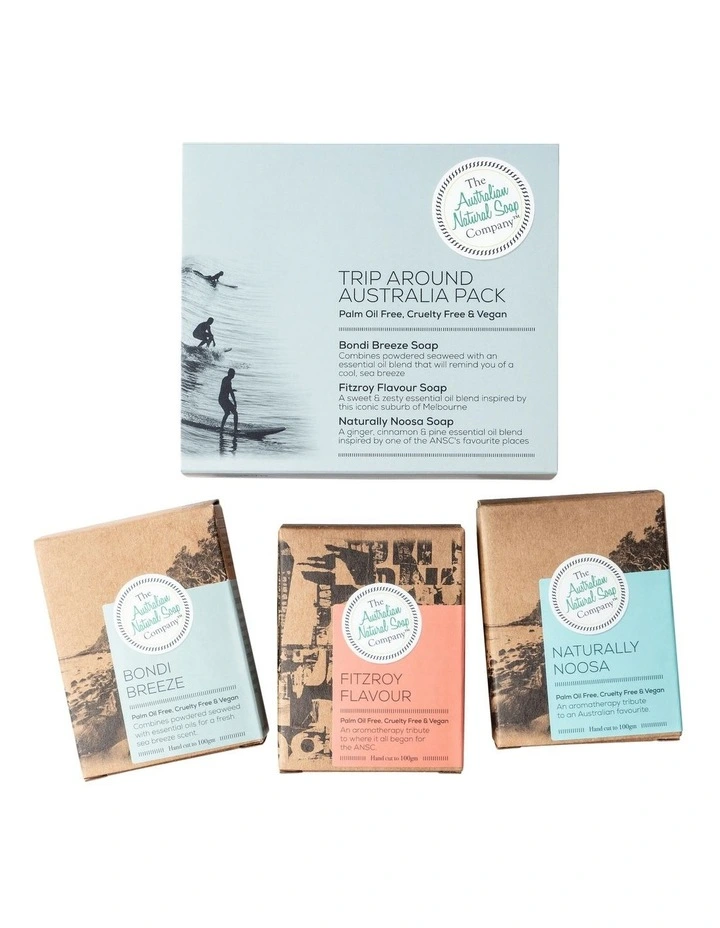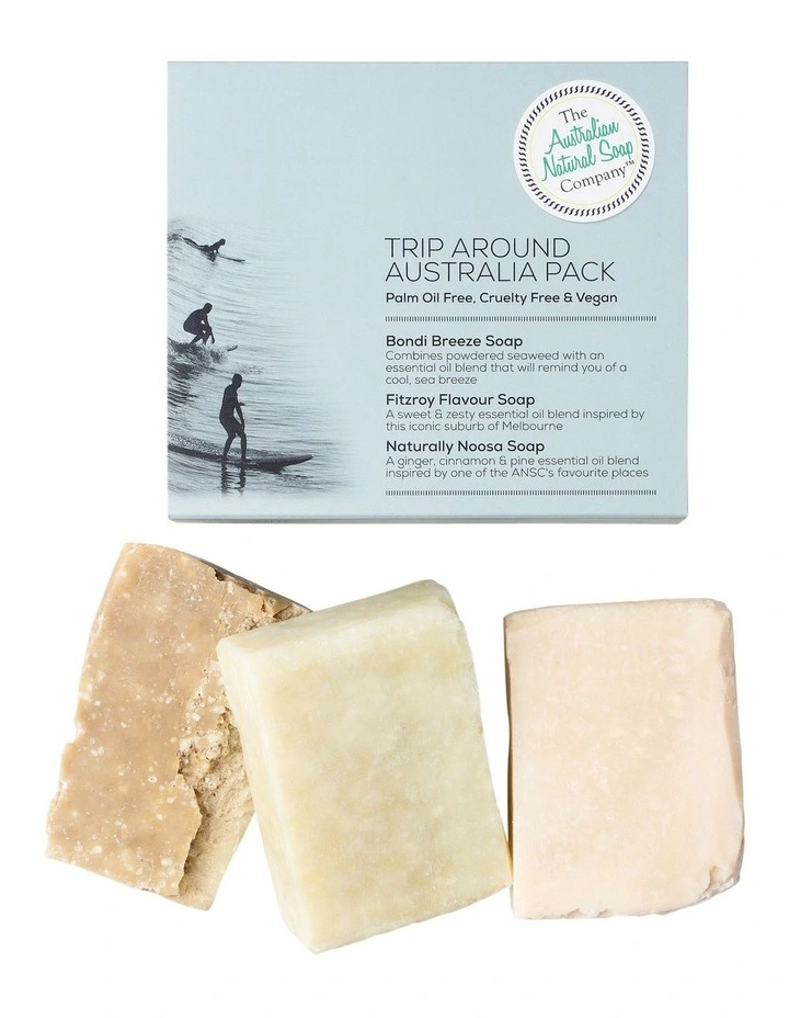 From sunny beaches to bustling cities, visit some of Australia’s most iconic places every time you shower. Inside are three soaps with some of our most unique oil combinations that pay tribute to famous Australian locations: Naturally Noosa, Fitzroy Flavour and Bondi Breeze.
