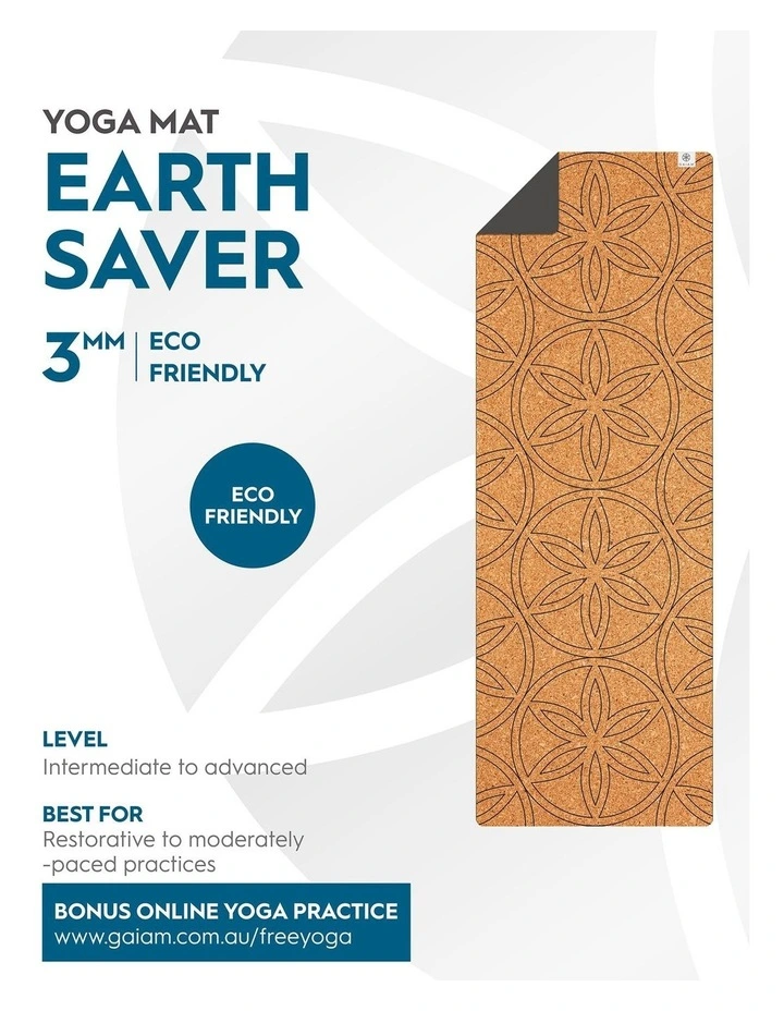 Gaiams Earth-Saver mat is ideal for intermediate level yogis. Supported by our Staybase rubber backing below and recycled cork top above this mat is heavy on performance but light on the Earth. The naturalΒ anti-microbial properties of cork along with its reliable grip ensures a safe, clean and eco-friendly practice.