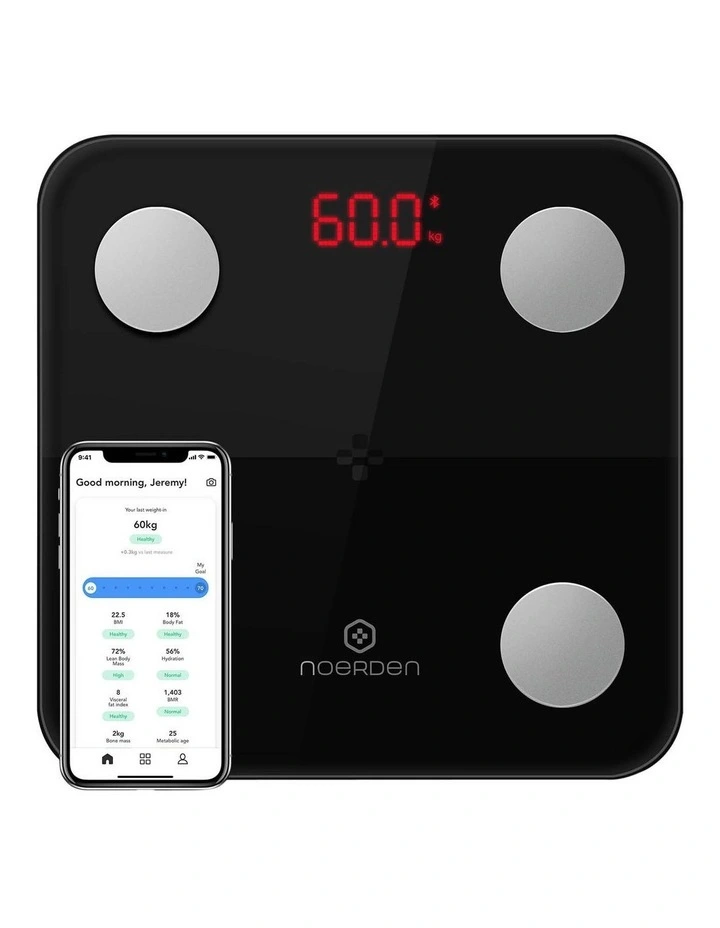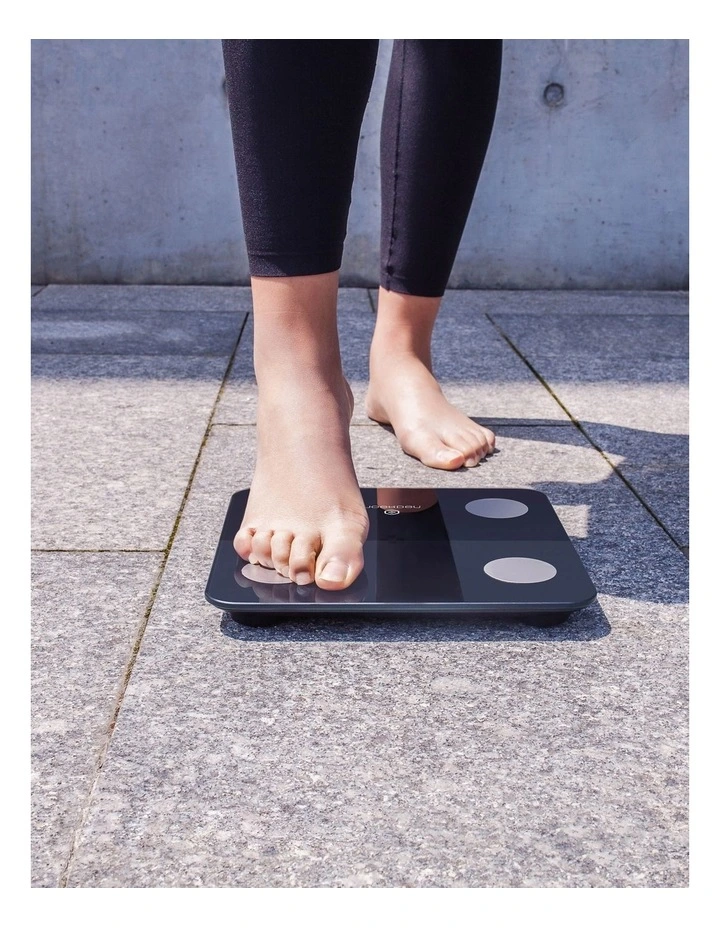 Amini smart body scale with Bluetooth connection to analyse body compositionthrough 9 detailed biometrics Weight, BMI*, BMR*, Fat Mass, Muscle Mass,Hydration, Visceral Fat, Bone Mass and even your Metabolic Age! The MINIMI is atrue health companion thanks to the App that not only tracks your data but alsosupports you with advices and recommendations to maintain or improve eachbiometric.