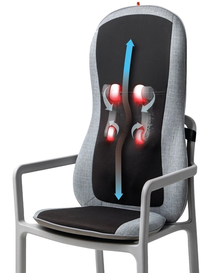 The Sharper ImageΒ Shiatsu Chair Massager rubs away stress with a rolling and kneading massage action, plus optional heat and vibration. Simply place it on a chair or sofa and use the remote to select a pre-set massage mode targeting the upper back, lower back or full back.Β
